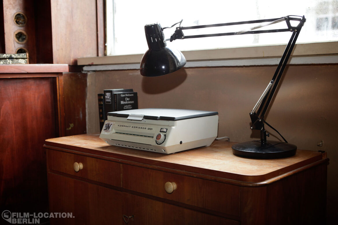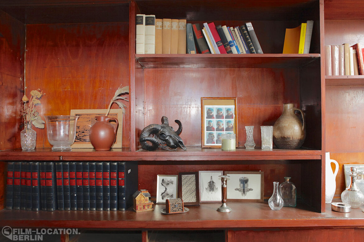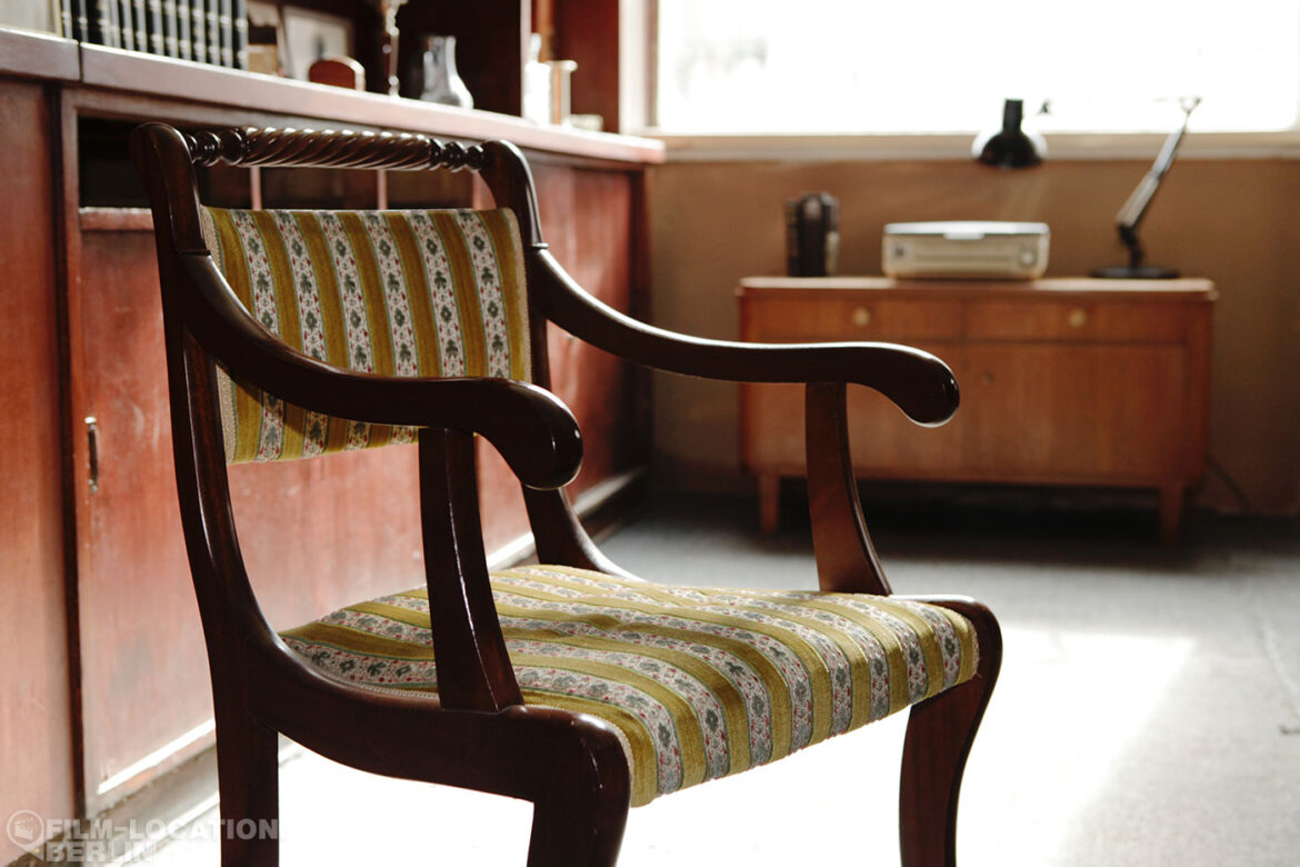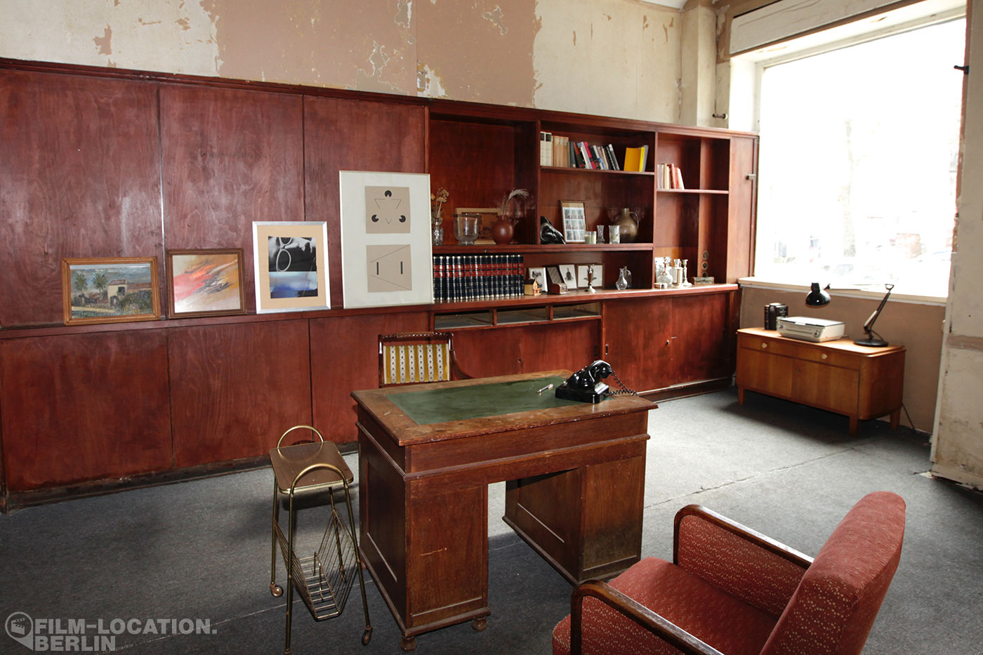 The former pub on Lichtenberger Herzbergstraße can be thematically transformed into an old men’s office, a (psycho)therapist’s office, or a law firm. The dark wood paneling exudes timelessness. A basic setup with matching furniture and small props is available. The view from the window faces Herzbergstraße.